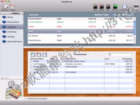 ToThePoint Software EasyMoney v2.1.8 MacOSX 英文正式版(帳戶和交易都聚集軟體)